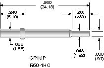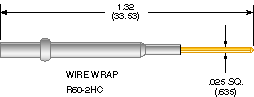 | Probe Technical Data Mechanical MINIMUM CENTERS: .100 (2.54) FULL TRAVEL: .160 (4.06) WORKING TRAVEL: .107 (2.72) Electrical MAXIMUM CURRENT: 8-10 amps at working travel, non-inductive RESISTANCE: At 35 mA test current 60 18 mOHMS mean Materials and Finishes PLUNGER: Heat treated beryllium copper 24 Kt gold plated over nickel BARREL: Nickel silver with silver plated ID and OD over nickel SPRING: Music Wire, silver plated over nickel |