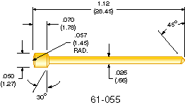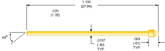 | Translation pins are used in bare board test systems to minimize the dedicated test fixture cost and to facilitate testing of bare PC boards not laid out on a standard .075 x .075 or .050 x .050 grid pattern. Test Connections offers pins of several sizes and tip condigurations. Custom designs can also be supplied. |
