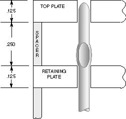 These pins have a retaining dimple that keeps the pins from falling out of the fixture, (see illustration). They are capable of testing SMD products on centers of: .050, .040, .025 and as low as .015 mil. They also allow testing of high density boards with the standard .100 mil. grid. it is possible to fan the pins up to .250 inches off center, and still maintain excellent contact. The use of a three plate system is recommended. Test Connections offers pins in four diameters and several different head styles to facilitate almost any application. Custom designs can also be supplied.